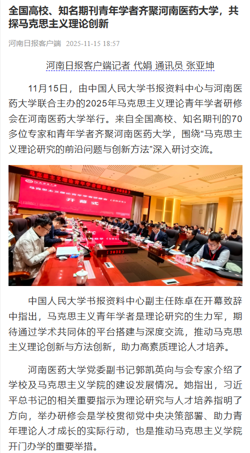 【河南日报客户端】等媒体报道我校举办马克思主义理论青年学者研修会